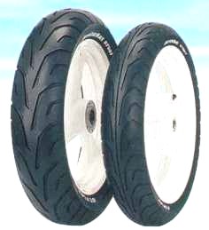 -130/70 62 version T ( 190 km/h ) : 72 € -130/70 62 version H ( 210 km/h ) : 84 € -140/70 66 version S ( 180 km/h ) : 91 € -diagonal -Trés bon pneu sur le sec, moyen sous la pluie. Rapport qualité/prix trés intéressant pour la version T. Longévité médiocre, gomme plutôt tendre. Dimension non homologuée pour le 140. |