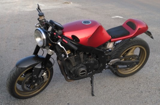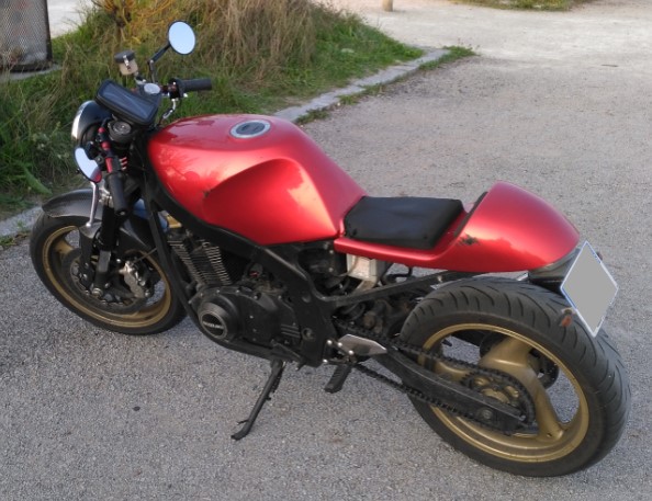 Pour la machine, 500 GSE de 1996 en cafe racer, yoshimura R11, train avant 600 gsxr 2014 (ça fraine mieux que l'origine bizarrement), bras oscillant du GSXR coupé en petit morceau sur l'établit (c'est en cours), toujours assis sur de la mousse de course (cul de cycliste = pas de pb !). Malheureusement pas d'image sous la main mais je prendrai des photos à l'occasion.