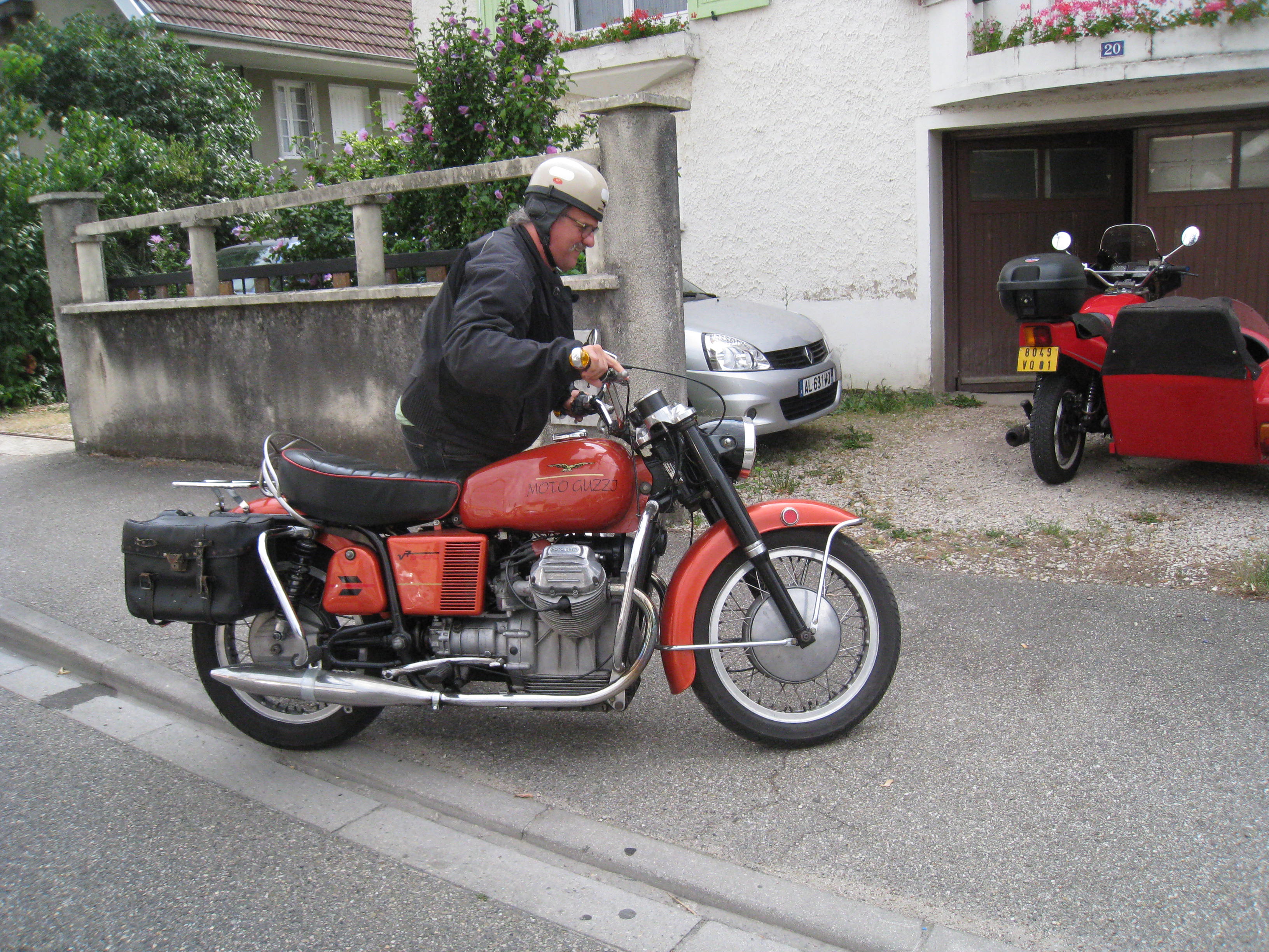 Motards de 63 et 65 ans depuis 50 ans .....et toujours fan ! nous roulons régulièrement en 500 GSE de 1998 et 900 TDM de 2008. Pour les bons souvenirs, nous avons gardés une GUZZI V7 special de 1972 et un side GUZZI T3 de 1976. Ils sortent à l'occasion des expos et ballades en anciennes. Également amateurs de ballades en trial nous avons une OSSA MAR de 1977 et une Fantic 403 de 1987.